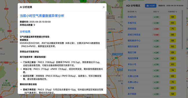 1.     精準溯源:結合歷史數據、氣象條件、周邊環境等多維度信息,智能分析異常成因,區分是本地污染、區域傳輸還是特定事件(如施工揚塵)影響。